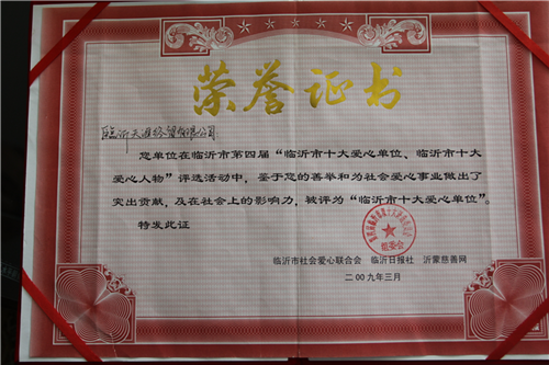 荣誉资质 公司热心公益事业,积极回报社会,公司先后荣获众多荣誉称号